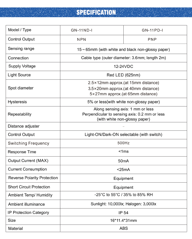 Home > Products >>Sensors >> Photoelectric Sensor >> Strip optoelectronic sensor GN-11D-I