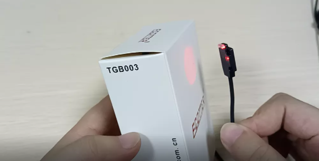 以GN-04NT-500為例,對射型的傳感器一端為發(fā)射端,一端為接收端,接收端接收到發(fā)射端的光,沒有輸出;當由被測物擋住發(fā)射光,接收端沒有接收光時,信號輸出。